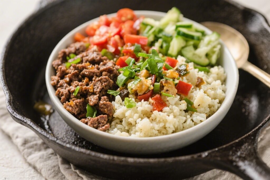 One Pan Keto Ground Beef and Cauliflower Rice Bowl – Easy, Flavorful, and Fast
