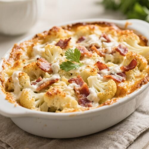 This casserole delivers big comfort with simple ingredients and bold flavor. Think tender cauliflower, creamy ranch, sharp cheddar, and crispy bacon baked into a bubbly, golden dish. It’s an easy weeknight winner and a crowd-pleaser at potlucks.