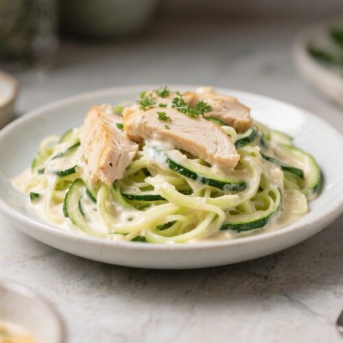 This is the kind of weeknight dinner that feels indulgent but keeps you light on your feet. Tender chicken, silky Alfredo sauce, and twirls of zucchini noodles check every box for comfort, flavor, and ease. You’ll get that classic creamy taste without heavy carbs or a long cooking time.
