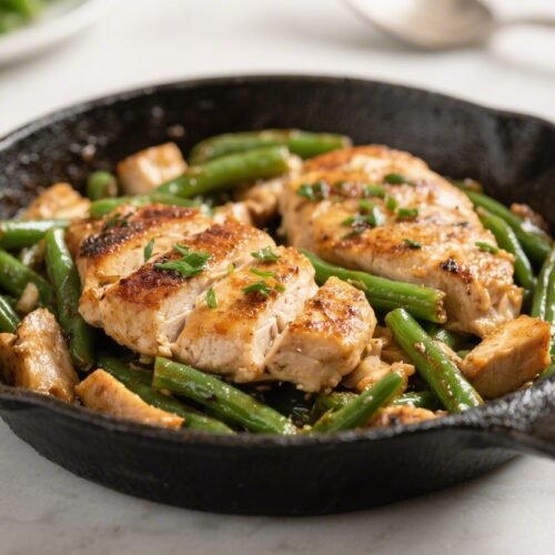 This is the kind of weeknight recipe that saves the day when you’re short on time but still want something wholesome. Chicken cooks up juicy, green beans stay crisp-tender, and everything gets tossed in a garlicky, buttery pan sauce. It’s low-carb, satisfying, and comes together in one skillet with minimal cleanup.