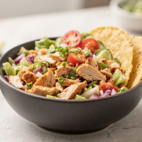This Keto Chicken Taco Bowl gives you everything you love about taco night—bold spice, crisp veggies, creamy toppings—without the carb-heavy extras.