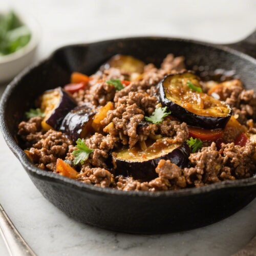 - Keto-friendly macros: Ground beef supplies protein and fat for satiety, while eggplant keeps carbs low with added fiber.