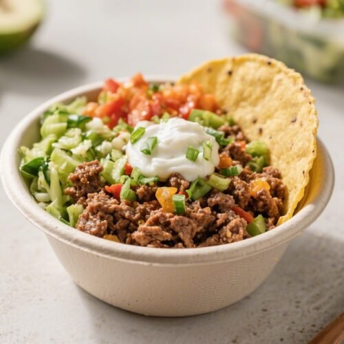 - Meal prep tip: Pack bowls with lettuce, cheese, and beef in one container and keep wet toppings (salsa, sour cream, avocado) separate until serving.