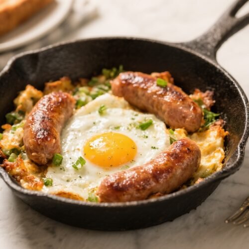 - Bacon Boost: Cook 3–4 slices of chopped bacon first, then brown the sausage in the bacon fat. Crumble bacon on top.