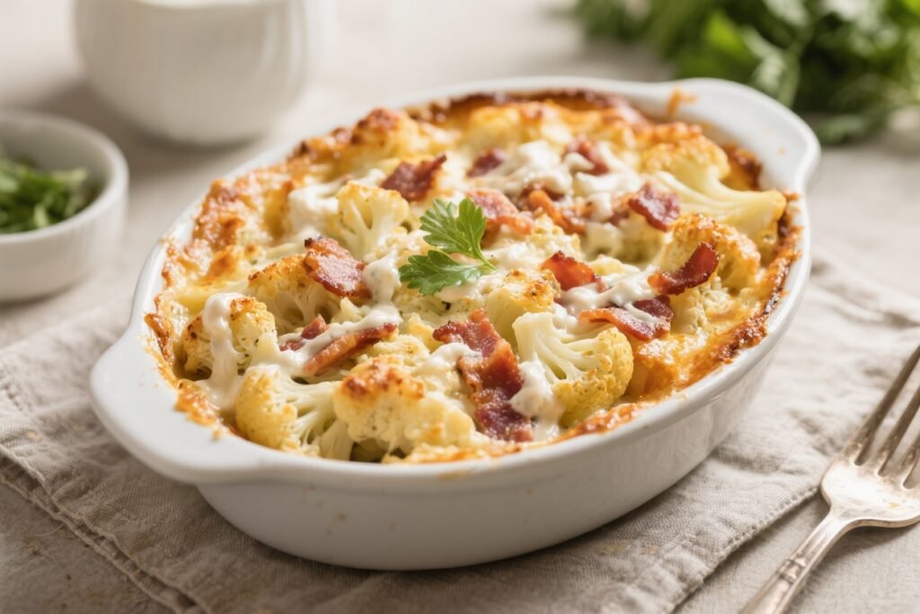 Keto Bacon Ranch Cauliflower Casserole – Creamy, Comforting, and Low-Carb