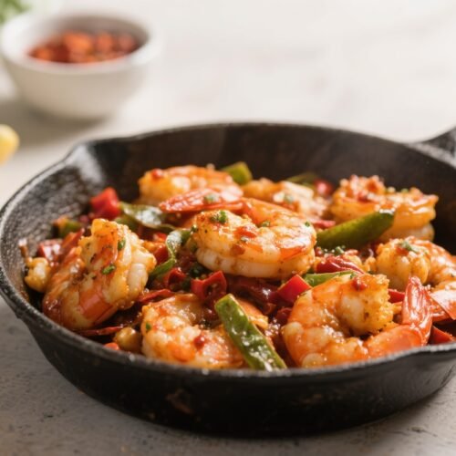 This Spicy Keto Shrimp Skillet is the kind of weeknight dinner that makes you feel like a genius. It’s fast, it’s packed with flavor, and it checks all the boxes for a low-carb lifestyle. Juicy shrimp, tender peppers, and a kick of heat come together in one pan with minimal fuss.