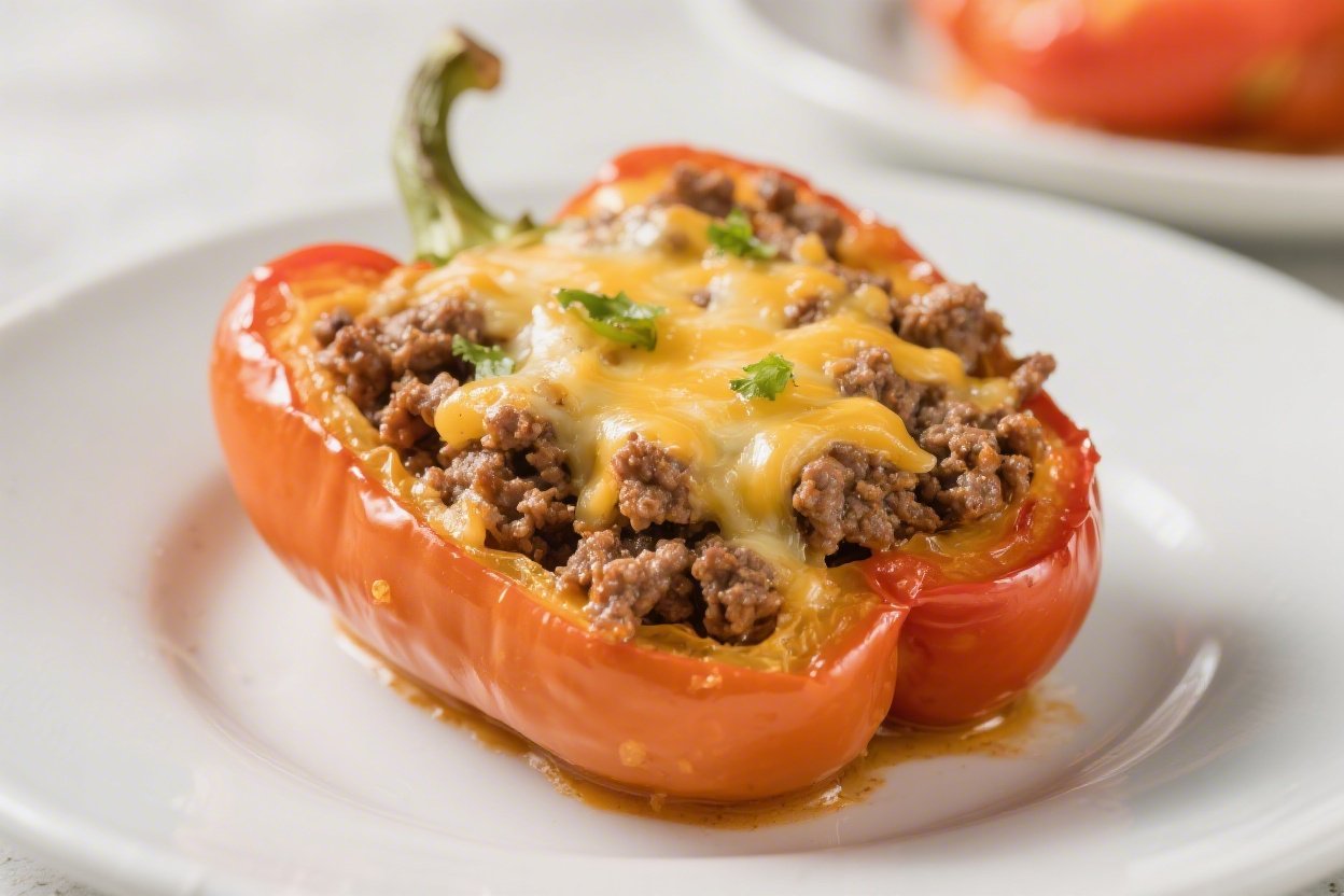 Stuff the peppers. Spoon the beef mixture into each par-baked pepper, mounding slightly. Top evenly with the remaining 1 cup of shredded cheese.