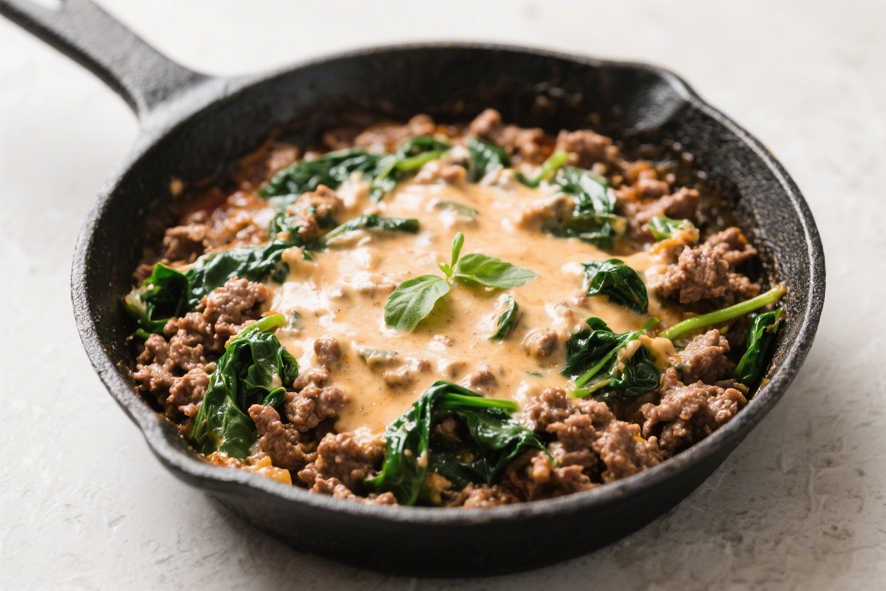 Wilt the spinach: Add the baby spinach in batches, folding gently until it wilts into the sauce. This takes about 1–2 minutes.