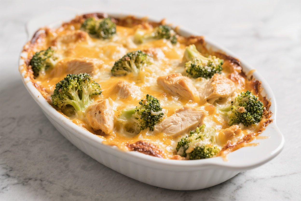 Par-cook the broccoli: Steam or microwave the florets until bright green and just tender, about 2–3 minutes. Drain well so the casserole doesn’t get watery.