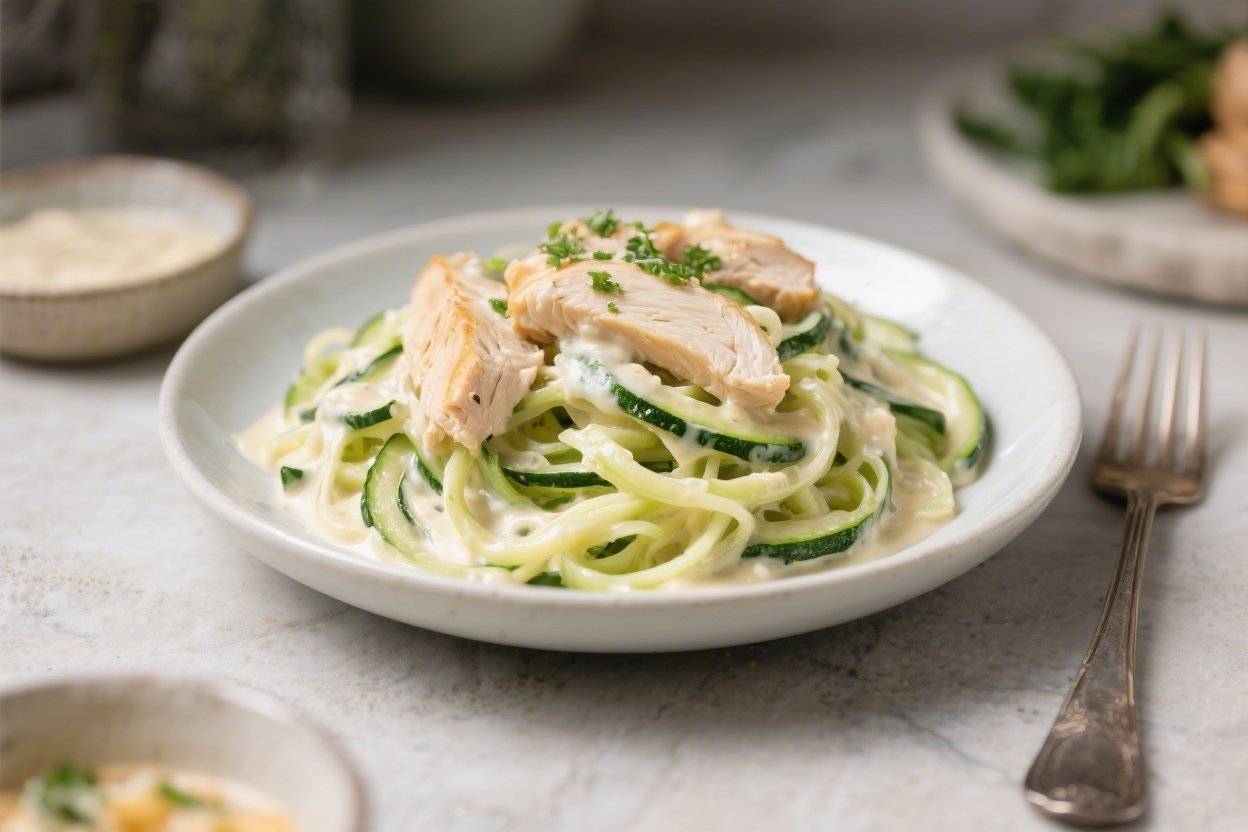 Prep the zucchini: Spiralize zucchini into noodles (zoodles). Lay them on a paper towel, sprinkle lightly with salt, and let sit 10 minutes. Pat dry to remove excess moisture.