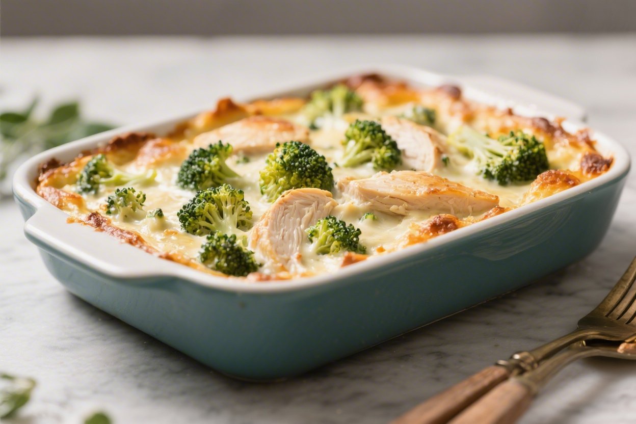 Cook the broccoli. Steam or blanch the florets until crisp-tender, about 3–4 minutes fresh or 4–5 minutes from frozen. Drain well and pat dry to avoid a watery casserole.