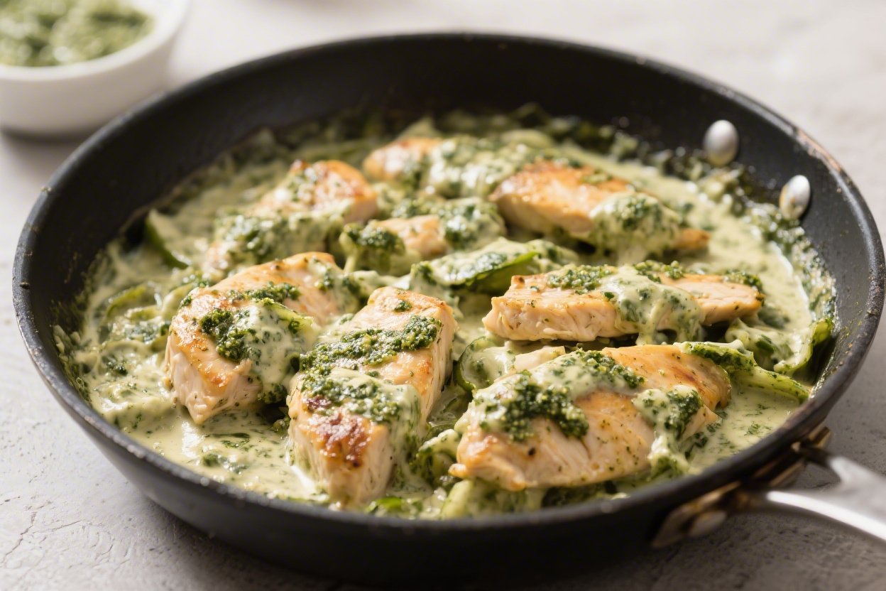 Stir in pesto and Parmesan. Whisk in pesto and Parmesan until smooth. Simmer 1–2 minutes until the sauce lightly thickens. Taste and season with salt, pepper, and red pepper flakes.
