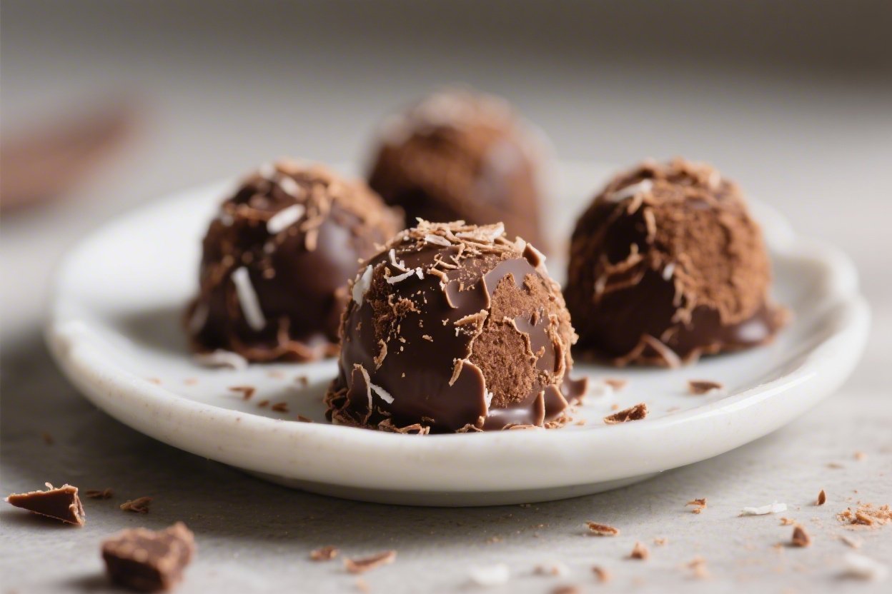 First coating option (quick): Roll each truffle in extra unsweetened shredded coconut. Return to the tray and chill 15–20 minutes to set.
