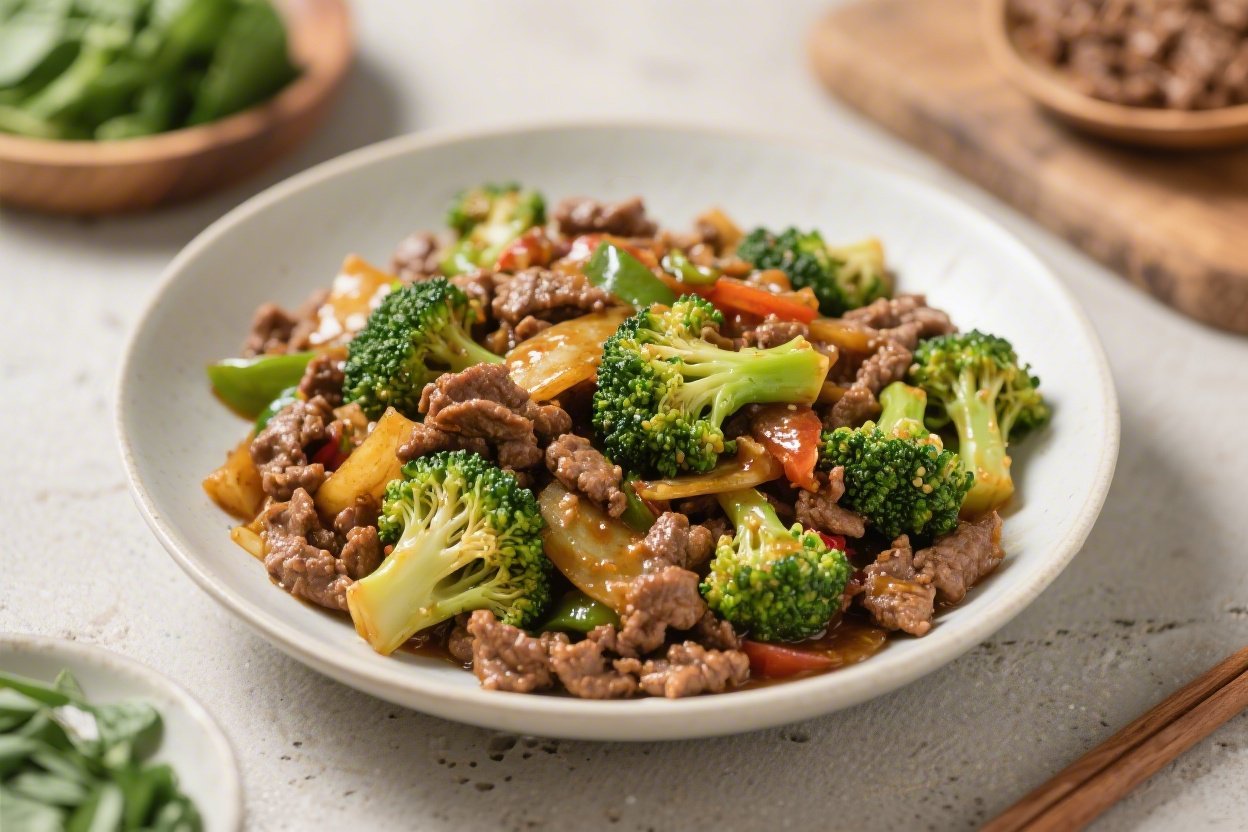 Cook the broccoli: Push the beef to one side. Add the remaining oil and broccoli to the empty space. Stir-fry 3–4 minutes, until bright green and crisp-tender.