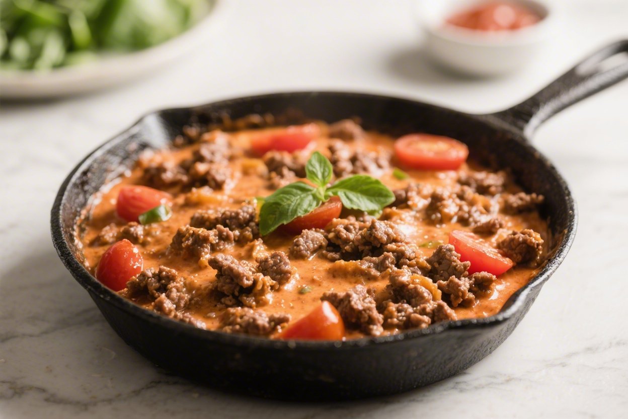 Bloom the spices: Sprinkle in smoked paprika, oregano, and a pinch of red pepper flakes. Stir to coat the beef and onions.