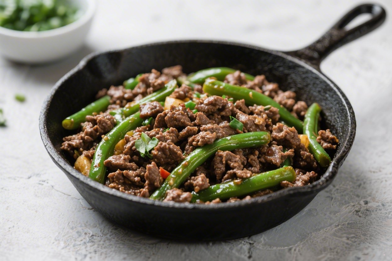Make the quick sauce. Stir in tomato paste and soy sauce. Add the beef broth, scraping up any browned bits from the pan. Reduce heat to medium and let it simmer 4–6 minutes, until beans are crisp-tender and the liquid reduces slightly.