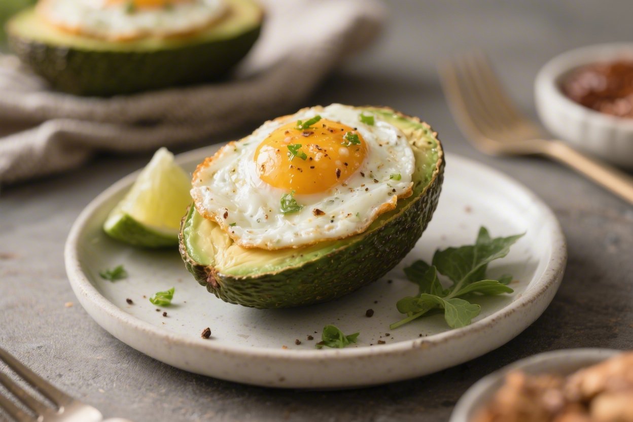 Prep the avocados: Slice each avocado in half lengthwise and remove the pit. Scoop out 1–2 tablespoons of flesh from each half to make a wider well for the egg.