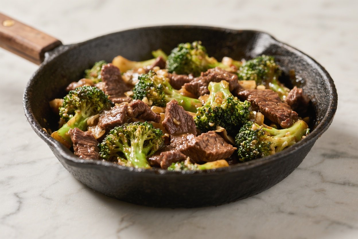 Finish with broccoli: Return the broccoli to the pan. Toss to coat and cook 1–2 more minutes, just until everything is heated through and the beef is tender.