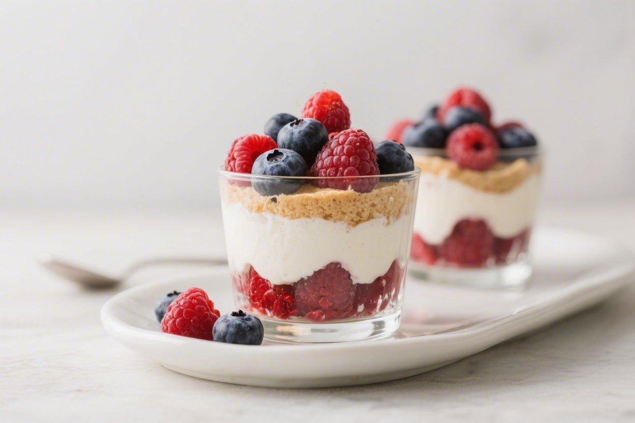 Add a layer of berries. Repeat until you reach the top, finishing with berries.