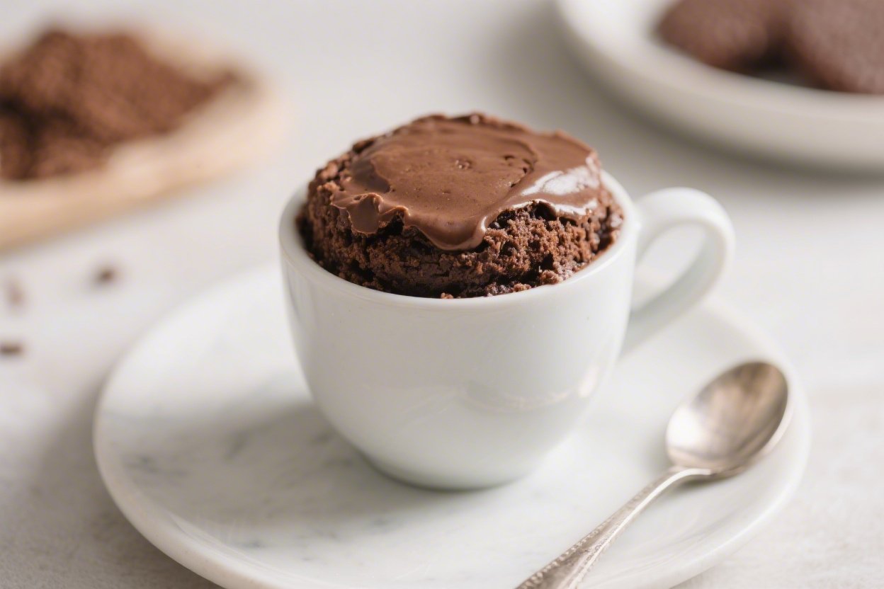 Add the dry mix: Add 3 tablespoons almond flour, 1 1/2 tablespoons unsweetened cocoa powder, 1 1/2 to 2 tablespoons sweetener, 1/4 teaspoon baking powder, and a pinch of salt. Stir until no dry pockets remain. The batter should be thick but spoonable.